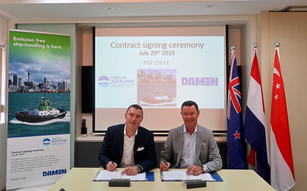 2019年7月29日,達(dá)門(mén)船廠集團(tuán)與新西蘭奧克蘭港口簽訂了一項(xiàng)全世界創(chuàng)新型的船舶設(shè)計(jì)與建造合同——世界首艘完全由純電力驅(qū)動(dòng)的雙向拖輪RSD-E Tug 2513,系柱拖力可達(dá)到70噸。該拖輪憑借其無(wú)與倫比的可持續(xù)性表現(xiàn),完善了港口的綠色能源循環(huán)。