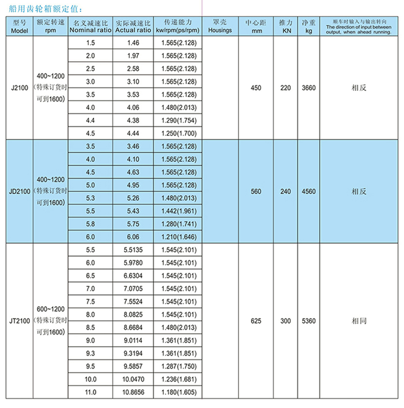 前進名義減速比: 2.5 輸入轉速: 400-1200rpm