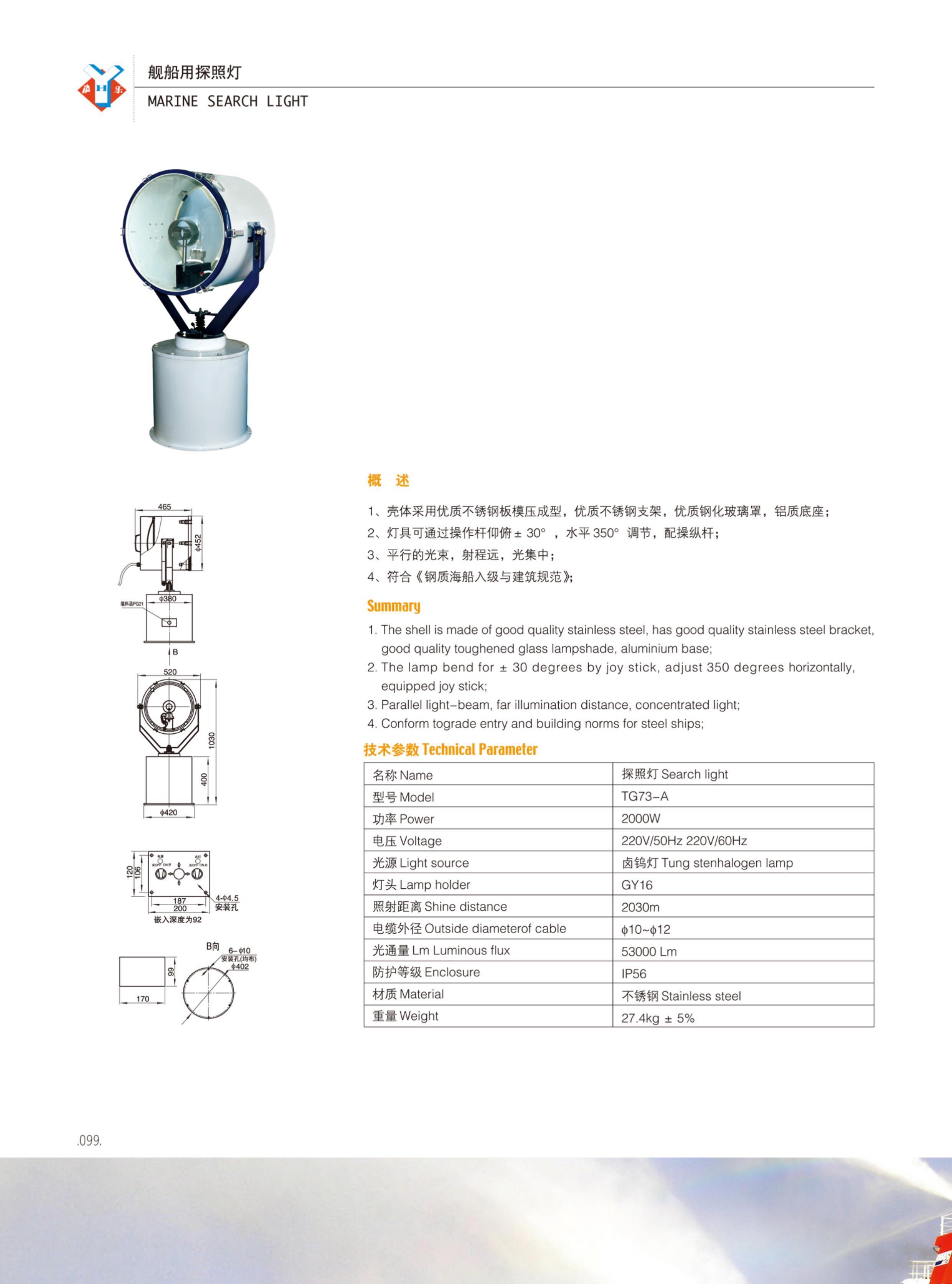 | 光通量: | 53000Lm | 光源: | 鹵鎢燈 |