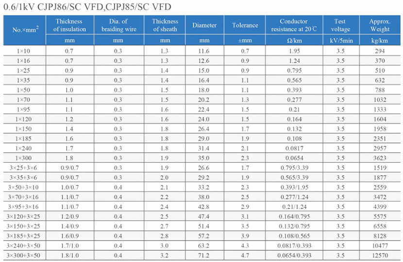 | 規定直徑公差: | ±3.5mm | 重量: | 6558kg/km |