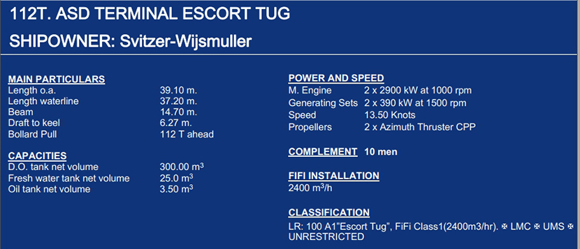 發動機功率: 2x2900kw at 1000rpm 推進裝置: 可調槳