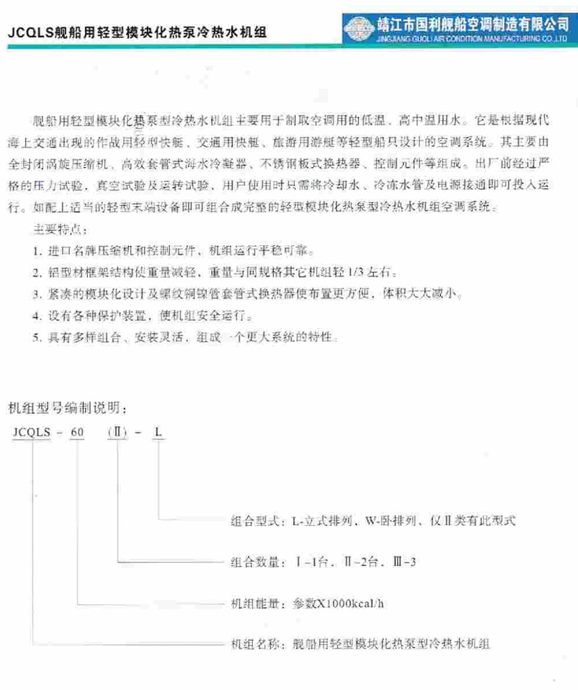艦船用輕型模塊化熱泵冷熱水機組