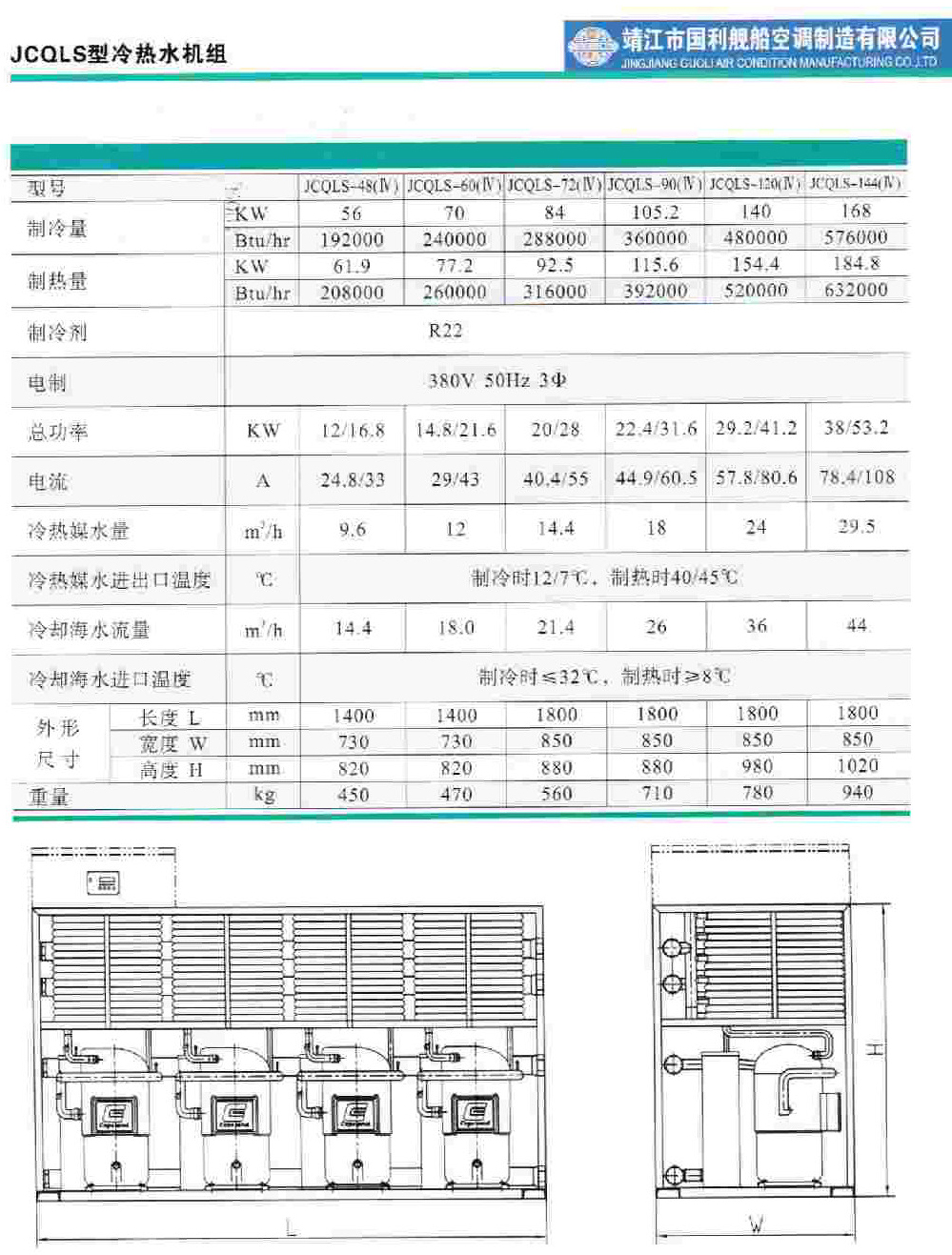 制冷劑: R22 電源: 380V 50Hz 3Φ