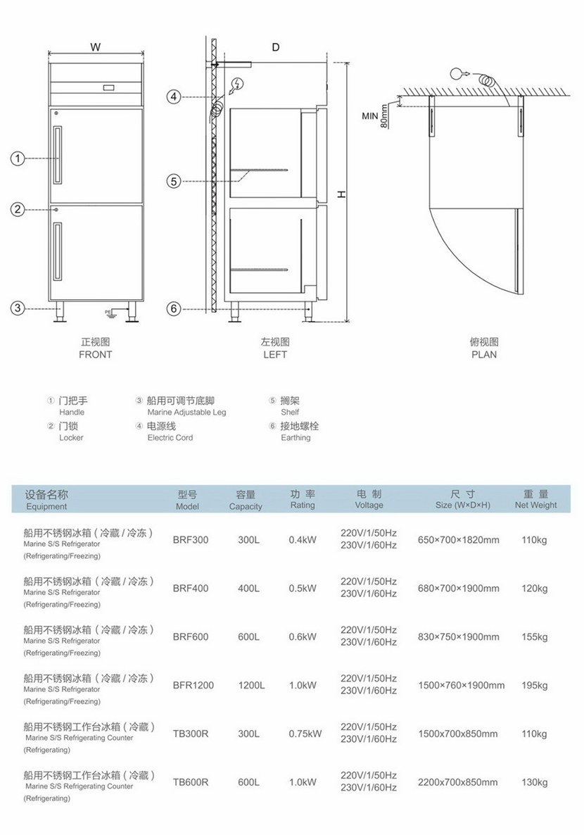 船用不銹鋼電冰箱(冷藏&冷凍)