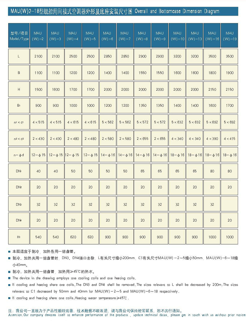 風機電機功率: 18.5/11kW 蒸汽加熱器型式: 銅管銅套片(介質為0.3~0.4MPa飽和蒸汽)