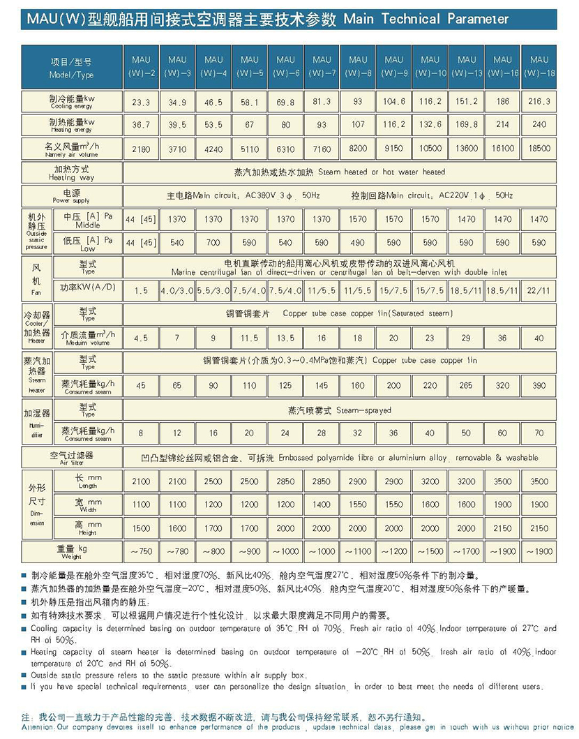 冷凝器水流量: 29m3/h 風機型式: 電機直聯傳動的船用離心風機或皮帶傳動的雙進風離心風機
