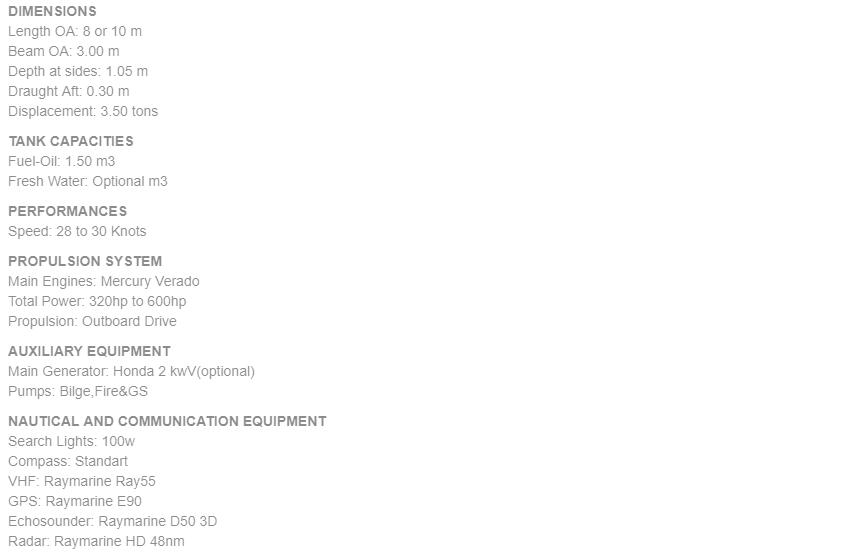| 總長: | 8m | 航速: | 30kn |