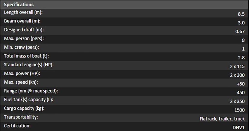 | 總長: | 8.5m | 航速: | 50kn |