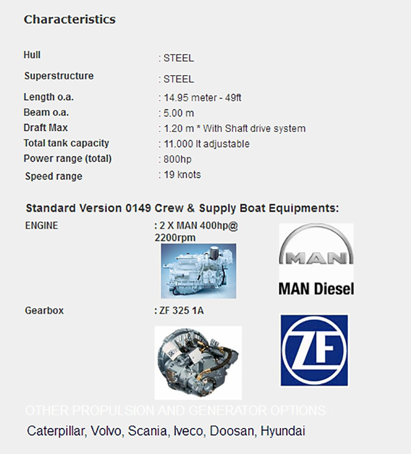 | 燃油容量: | 11.000lt | 發動機功率: | 800hp |