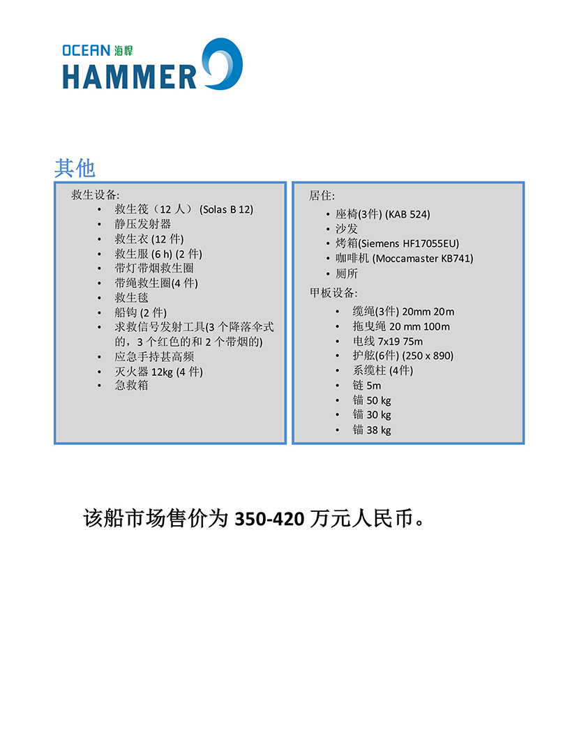 | 燃油容量: | 2000L | 船組人員: | 12P |