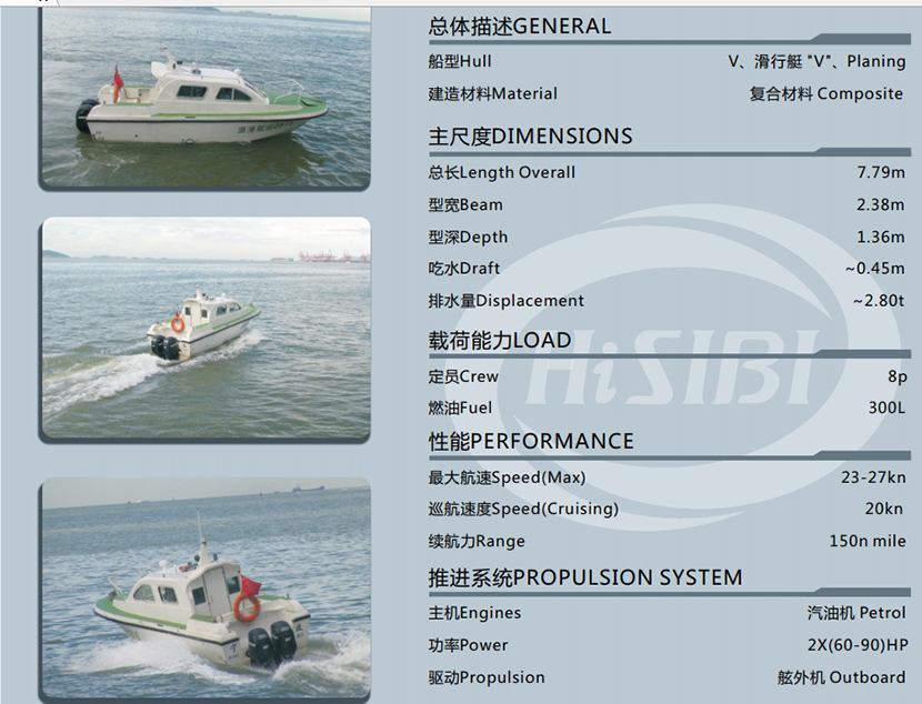 | 發動機功率: | 2×(60-90)hp | 推進裝置: | Outboard |