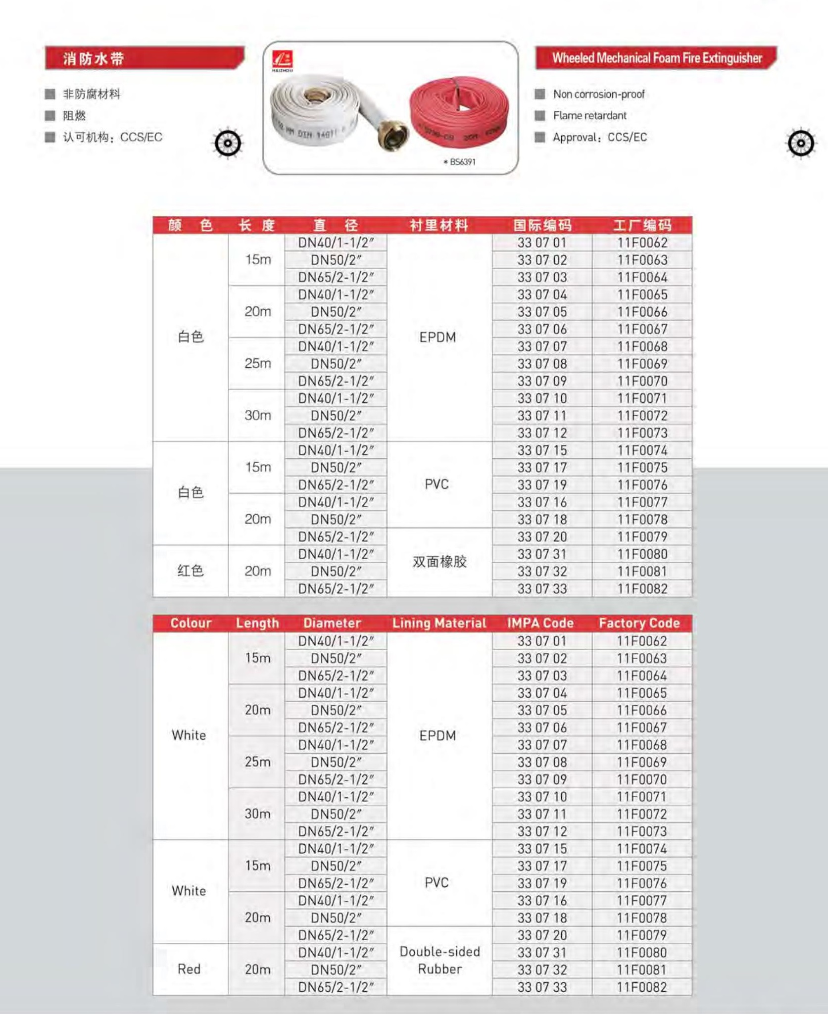 材質: 水帶-非防腐材料;襯里材料-雙面橡膠