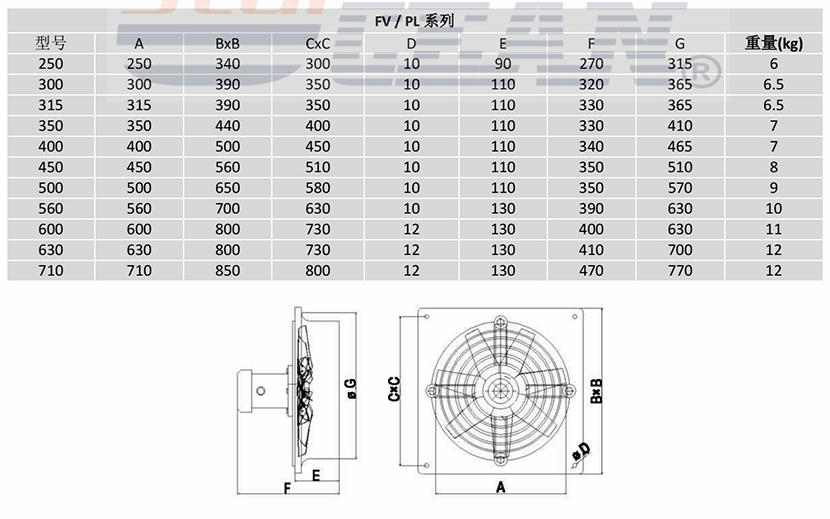 風量: 3400~1000m3/h 轉速: 2500rpm