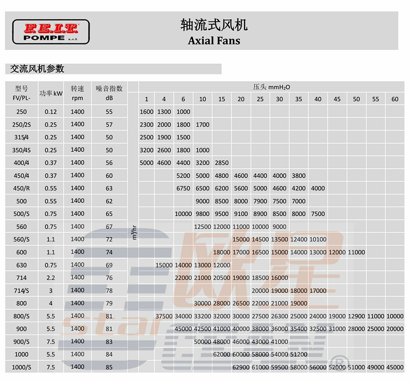 風量: 6750~4600m3/h 轉速: 1400rpm