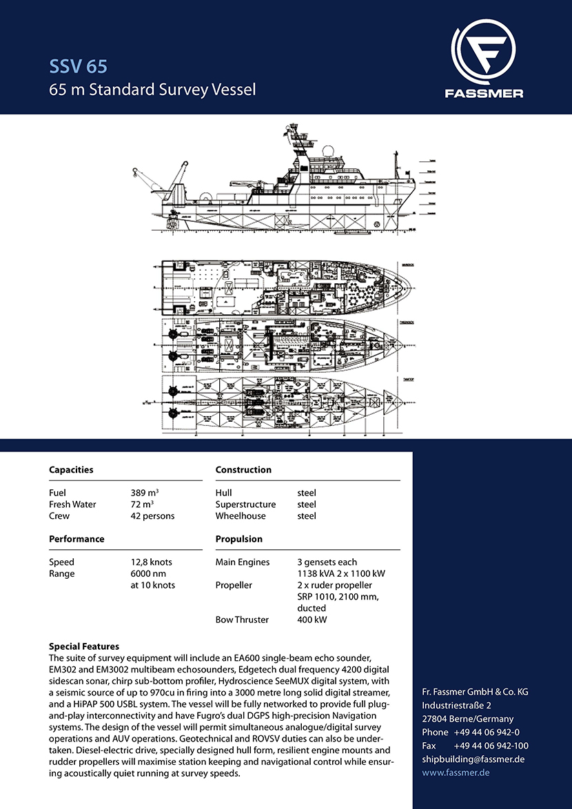 | 發(fā)動(dòng)機(jī)功率: | 2 x 1100kW | 推進(jìn)裝置: | 2 x ruder propellerSRP 1010,2100 mm,ducted |