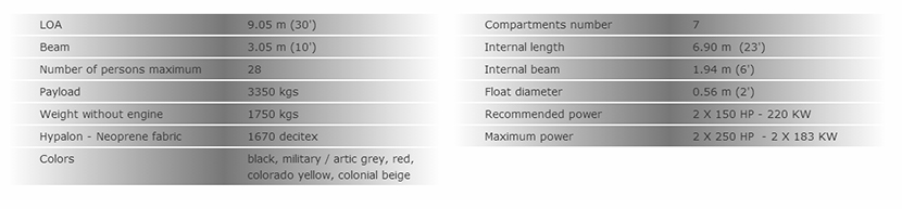 | 總長: | 9.05m | 發動機功率: | 2×250hp |