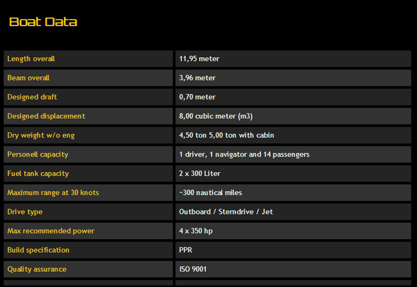 發動機功率: 4x350hp 型寬: 3.96m