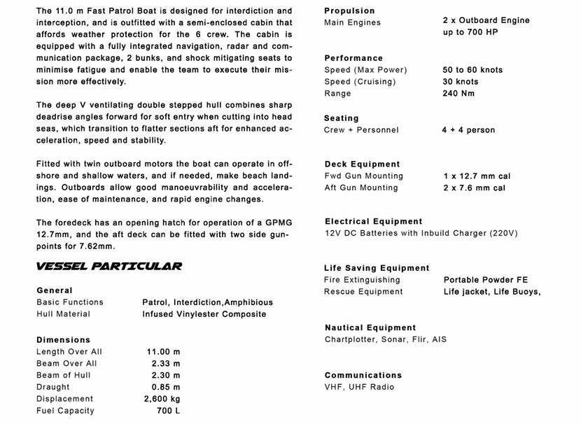 | 最大航速: | 50-60kn | 型寬: | 2.33m |