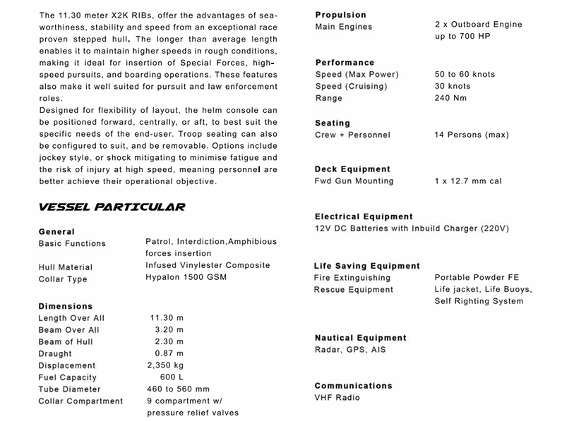 | 11.3米剛性船體充氣巡邏艇 | |||
