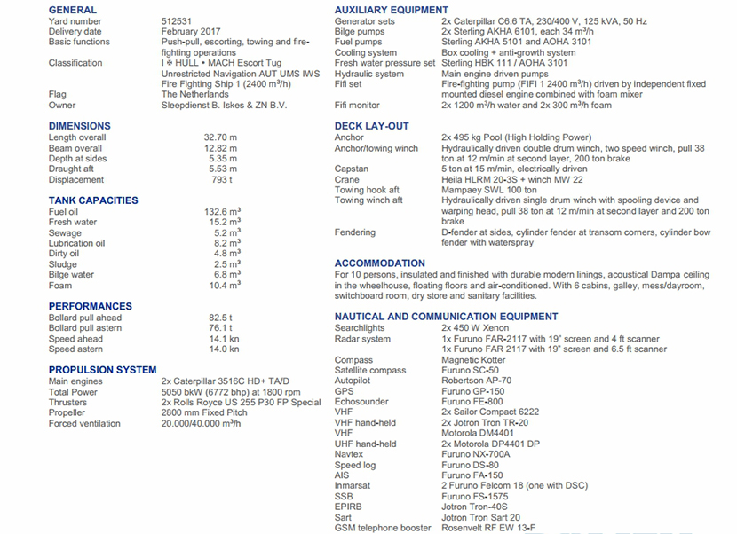 發動機品牌: Caterpilar 3516C HD TA/D 發動機功率: 2×2525 kW at 1800rpm