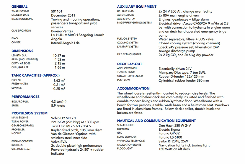 | 發動機品牌: | Volvo D9MH | 齒輪箱: | Twin Disc MG5091 |