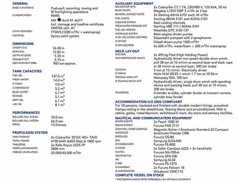 發動機品牌: Caterpilar 3516C HD TA/D 發動機功率: 2×2350 kW at 1800rpm