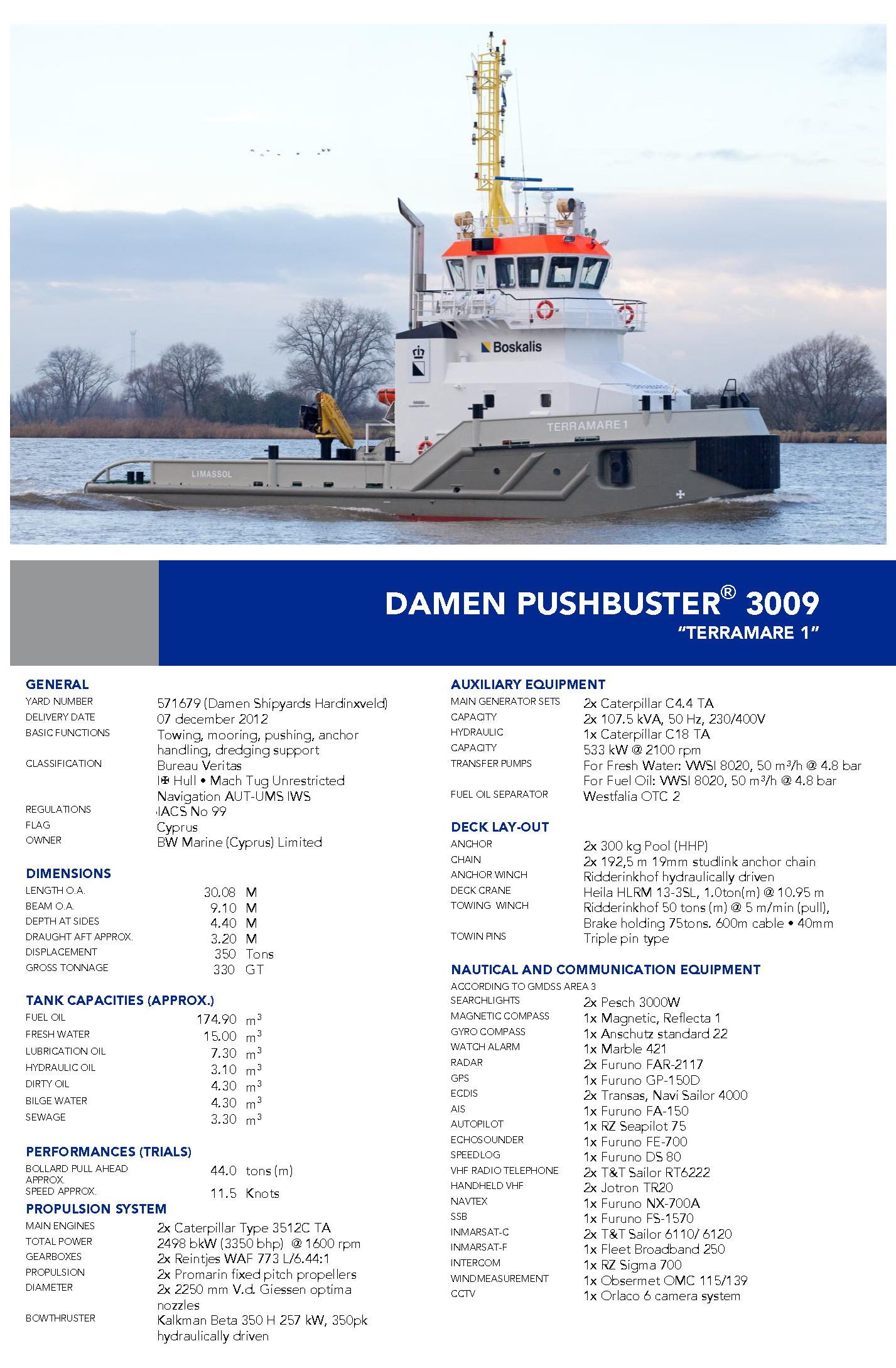 發動機功率: 2498kW 推進裝置: 2×Promarin fixed pitch propellers
