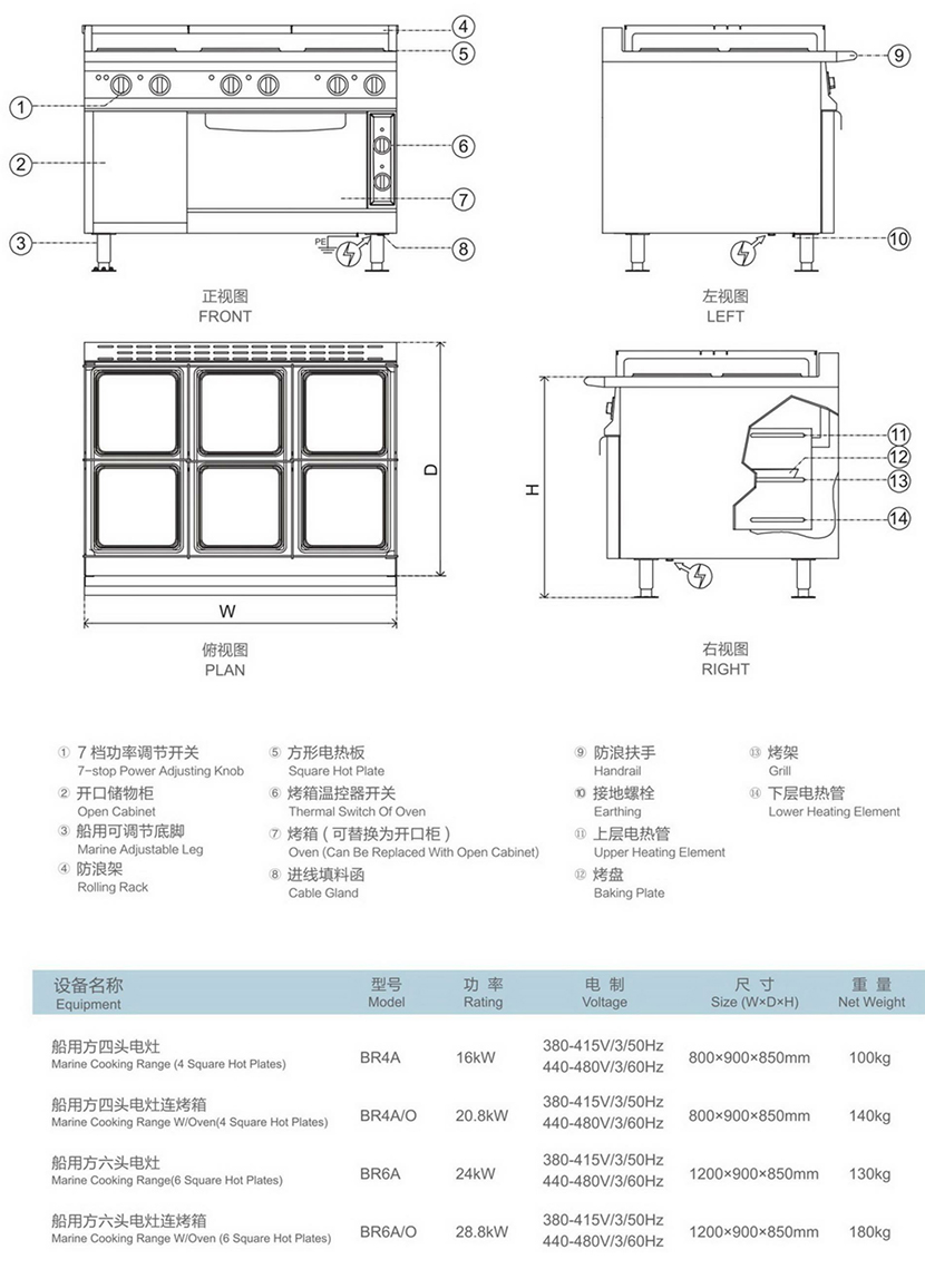 | 類型: | 船用電灶 | 外形尺寸: | 1200×900×850mm |