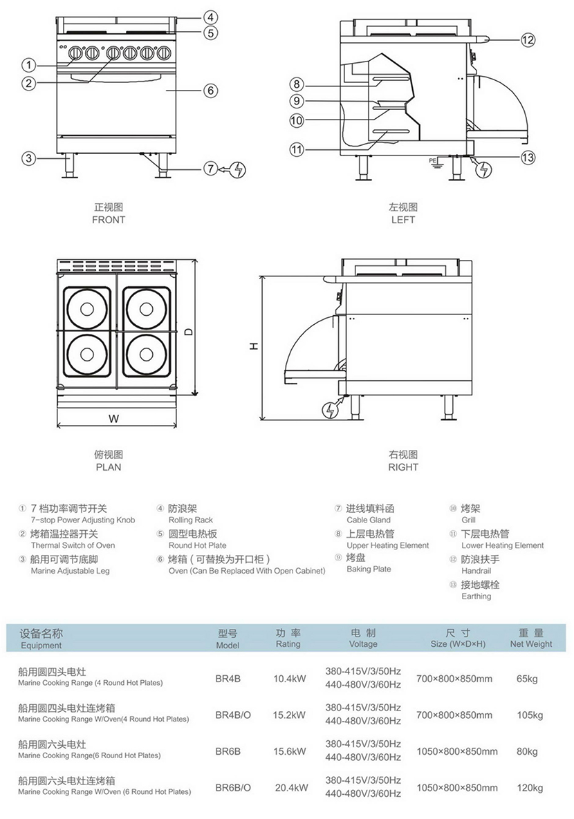 類型: 船用電灶 外形尺寸: 700×800×850mm