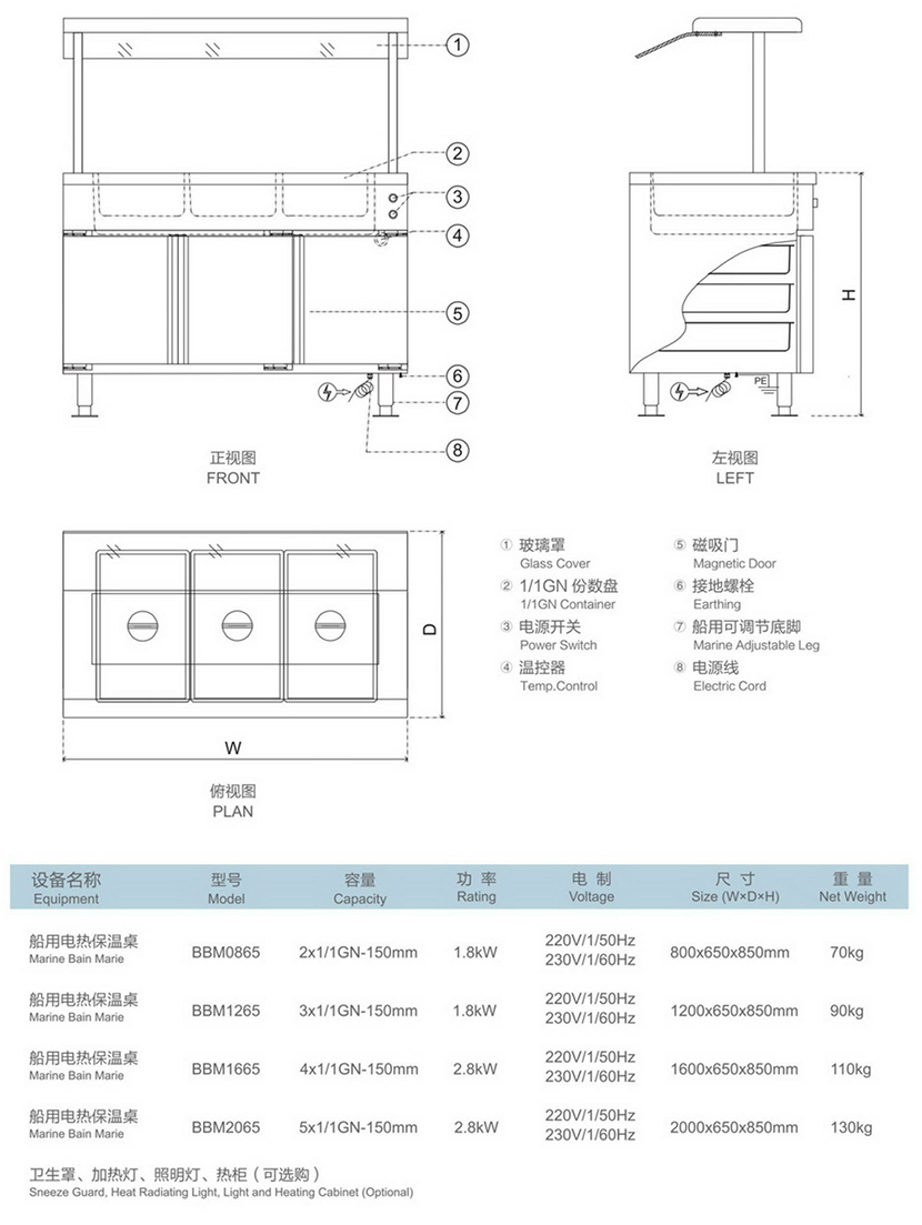 | 類型: | 船用電熱保溫臺 | 尺寸: | 2000×650×850mm |