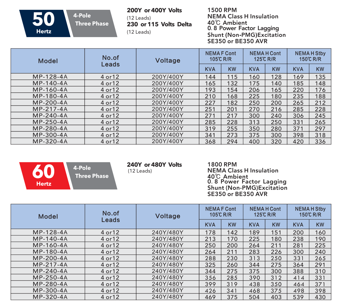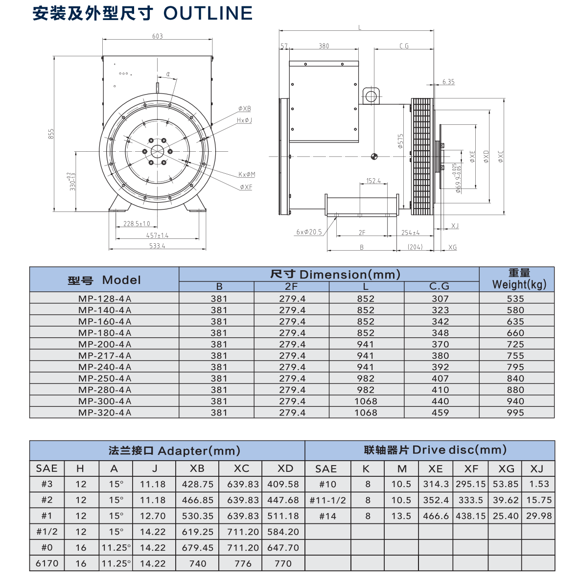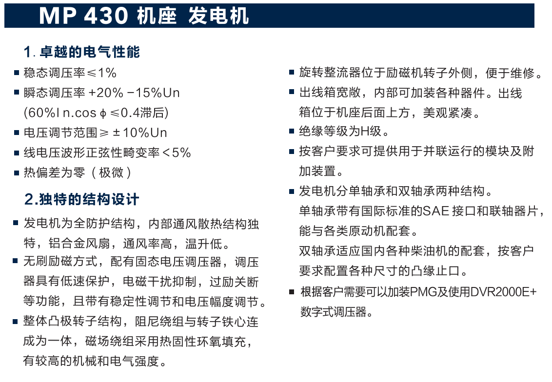 | MP430無刷同步交流發(fā)電機50HZ | |||