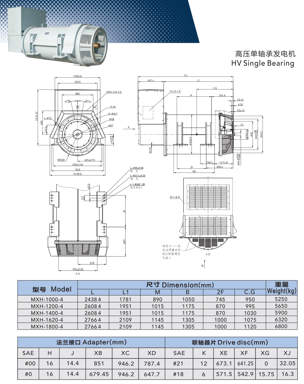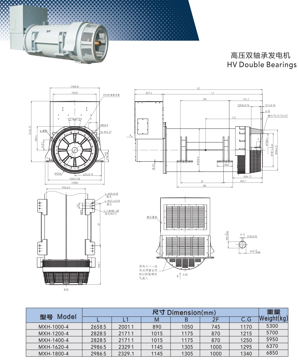 | MX860無刷同步交流發(fā)電機(jī)50HZ中壓6600V | |||