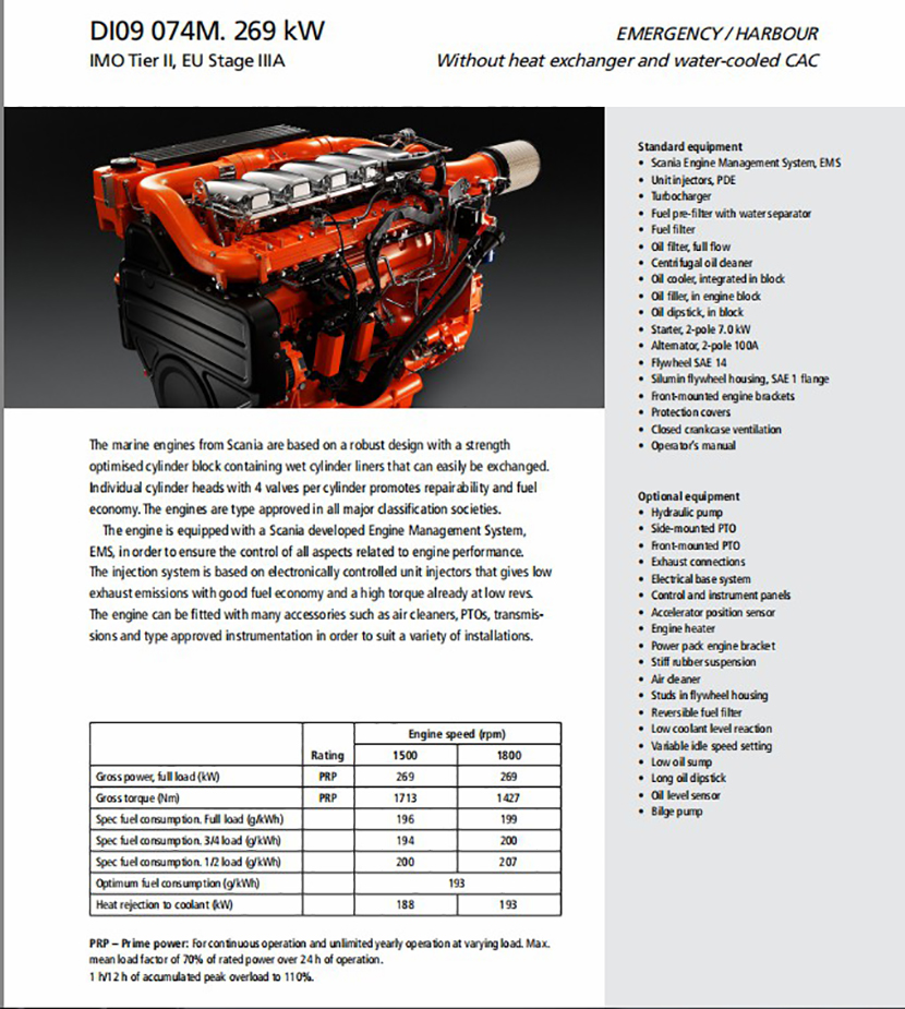 燃油消耗: 193g/kWh 缸數: 4-stroke