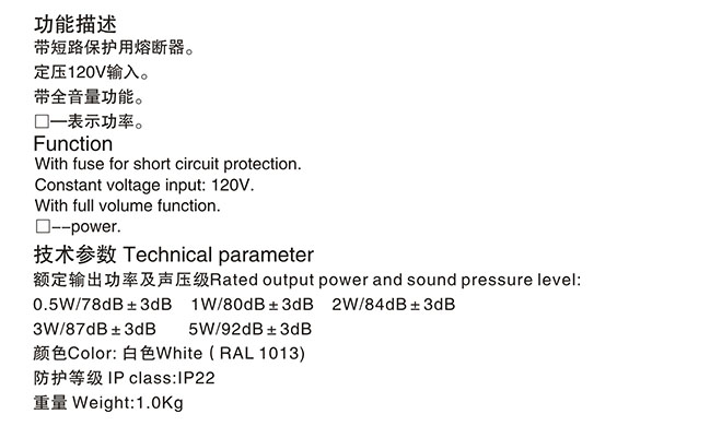 | 功率: | 2W | 聲壓等級: | 84dB |
