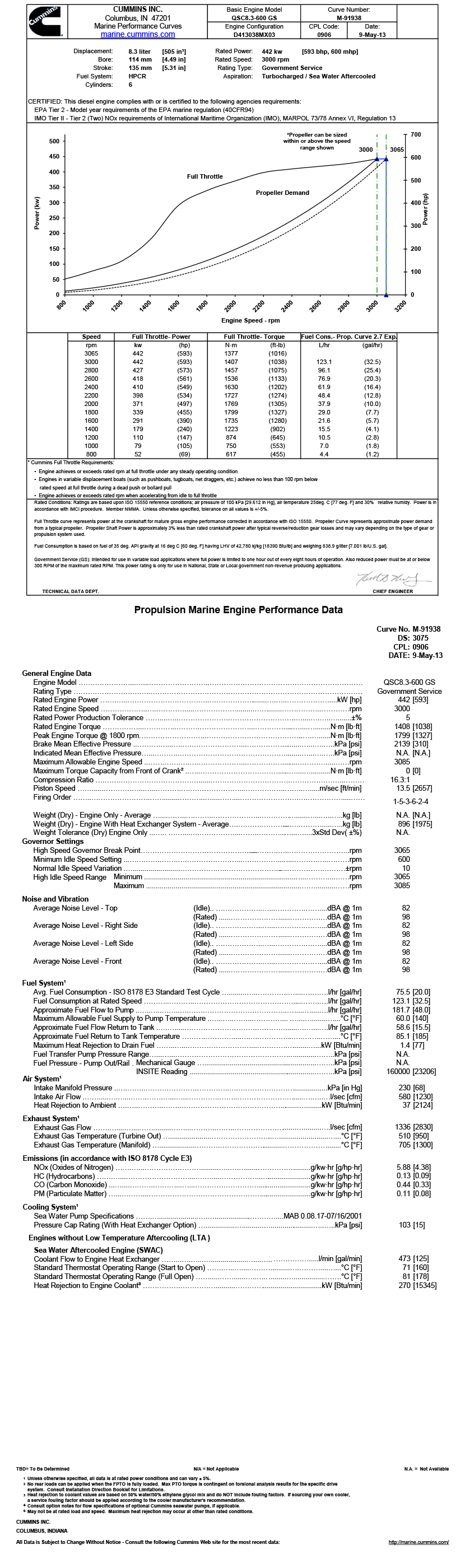 進氣方式: Turbocharged/Sea Water Aftercooled 最大扭矩: 1799N.M(轉速為1800rpm下的最大扭矩)