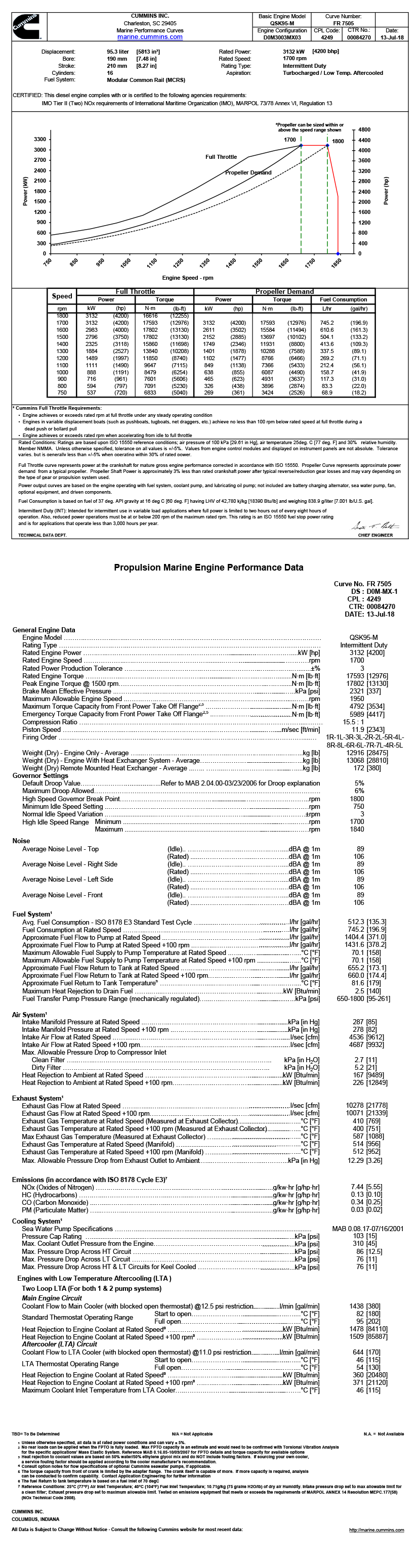 | 廢氣排溫: | 410℃(Measured at Exhaust Collector)/514℃(Manifold) | 廢氣體積流量: | 10278L/S |