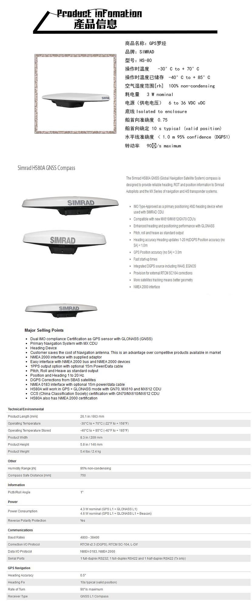 類型: 電羅經 縱搖角/橫搖角: