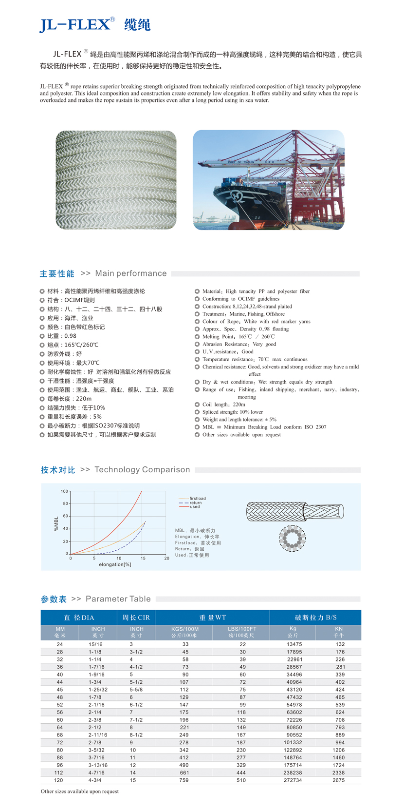 | 材質(zhì): | 高性能聚丙烯纖維和高強度滌綸 | 股數(shù): | 12股 |