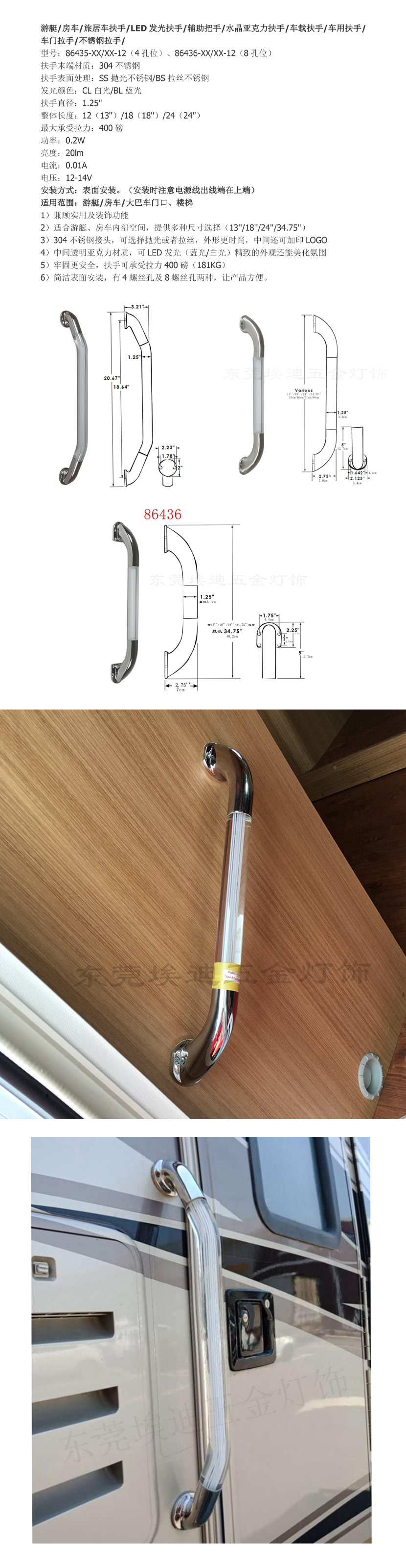 不銹鋼LED發(fā)光扶手86435-XX/XX-12東莞埃迪五金燈飾有限公司 |