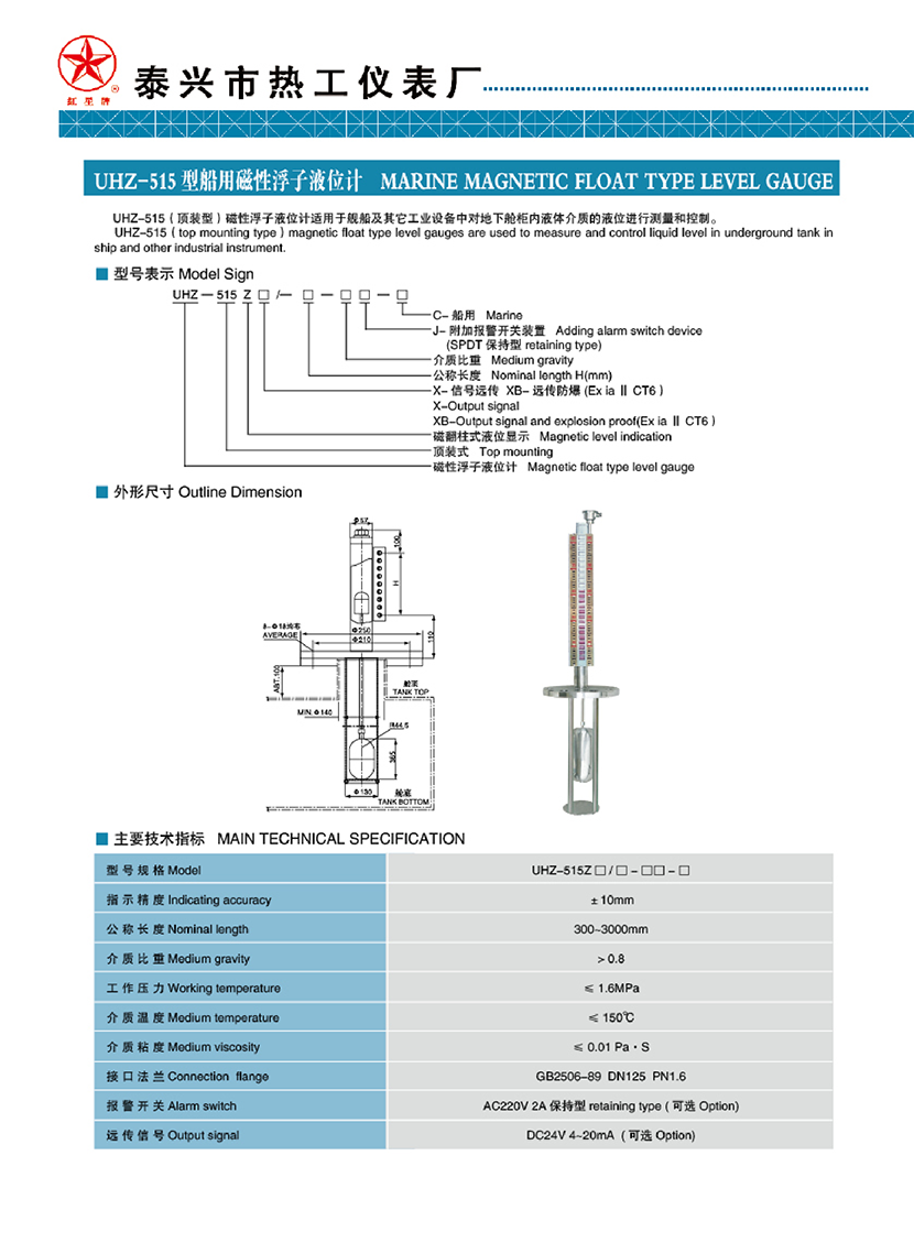 | UHZ-515型船用磁性浮子液位計(jì) | |||