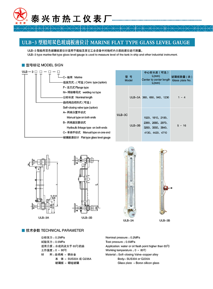 | ULB-3型船用雙色玻璃板液位計 | |||