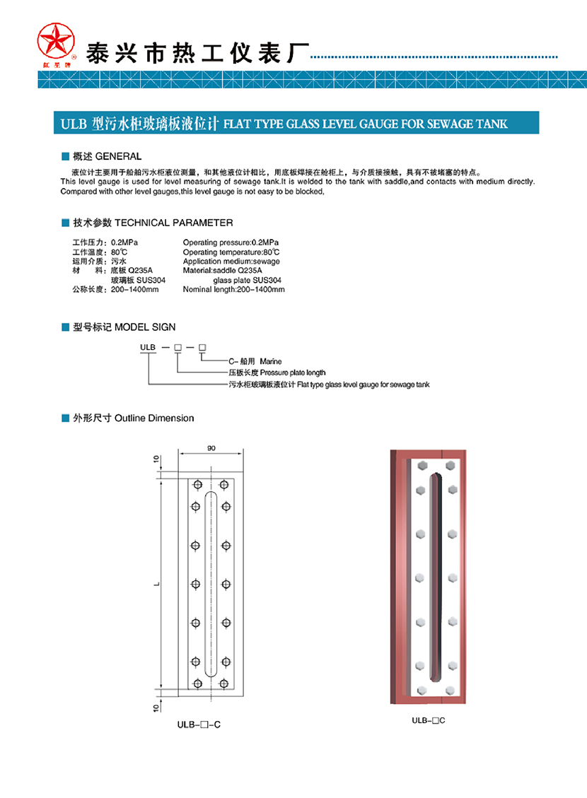 ULB型污水柜玻璃板液位計
