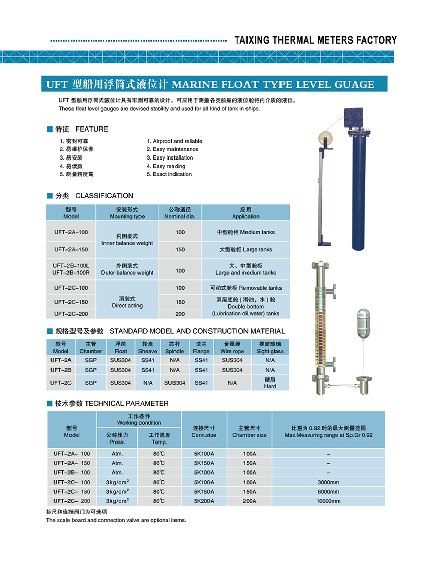 | UFT型船用浮筒式液位計 | |||