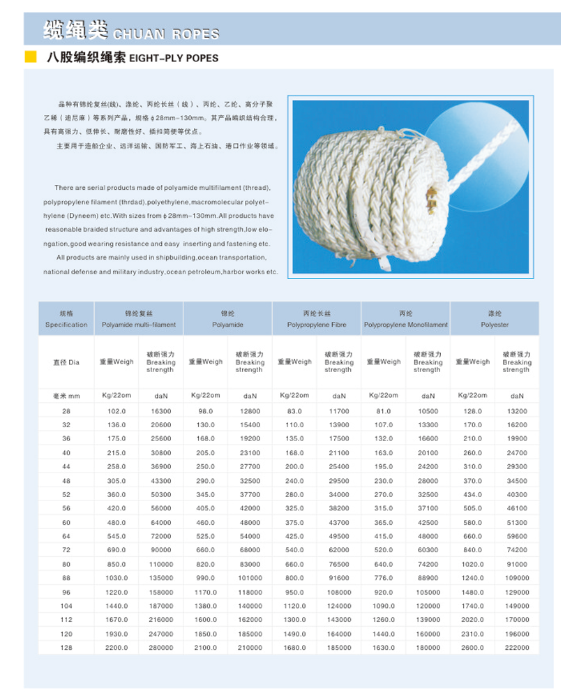 丙綸復絲雙層多股編織纜繩