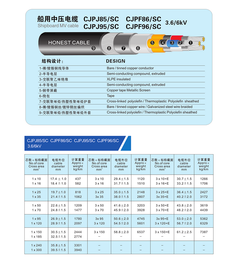 類型: 船用中壓電纜 名義直徑: 19.7±1.0mm