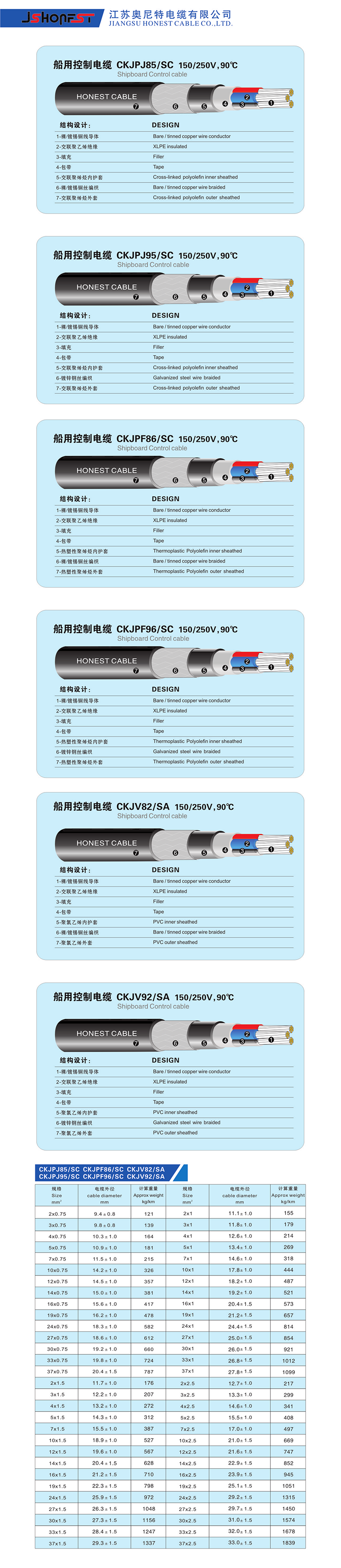 類型: 船用控制電纜 名義直徑: 18.6±1.0mm