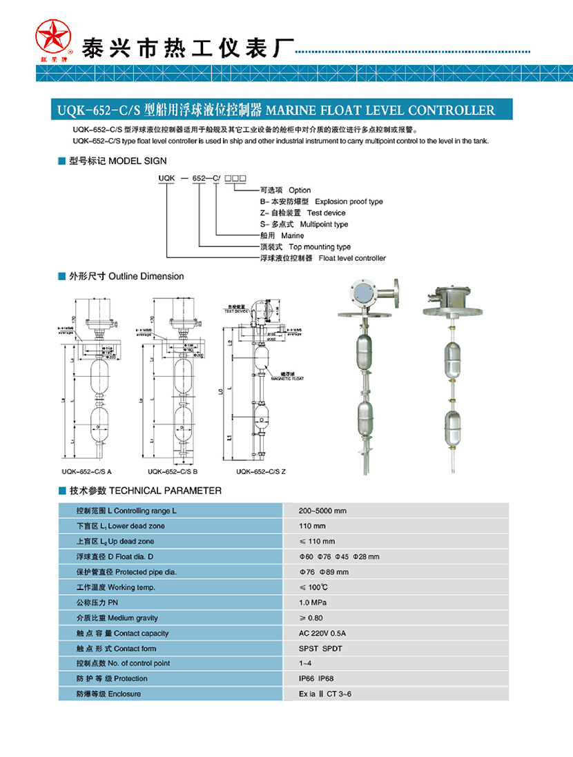 UQK-652-C/S型船用浮球液位控制器