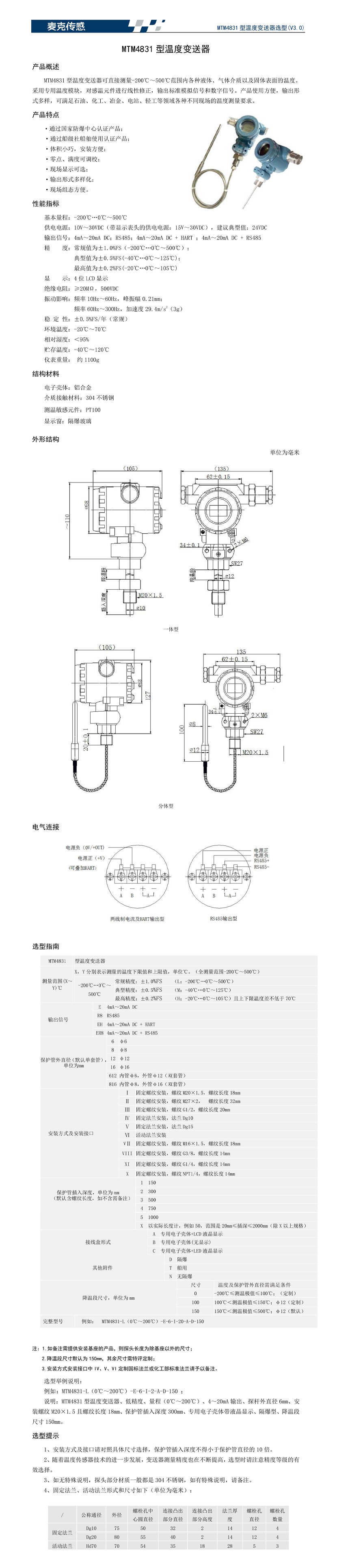 | MTM4831型溫度變送器 | |||