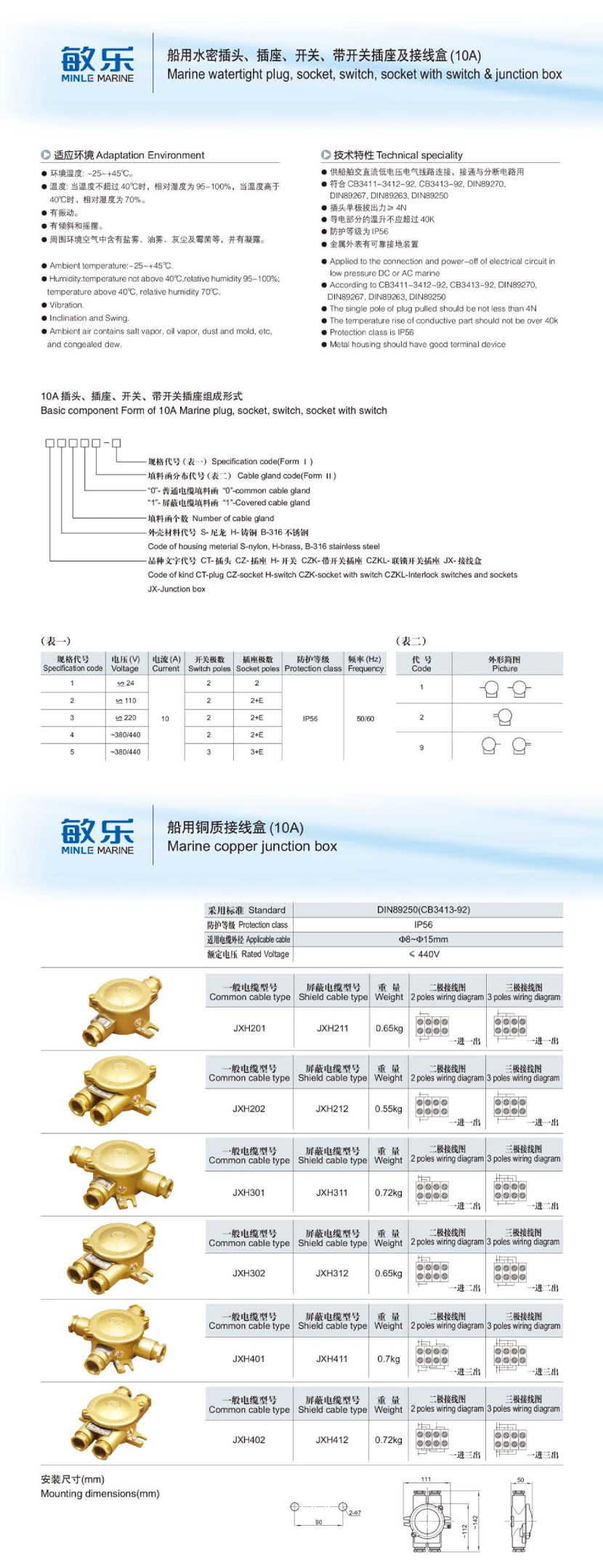 電流: 10A 采用標準: DIN89250(CB3413-92)