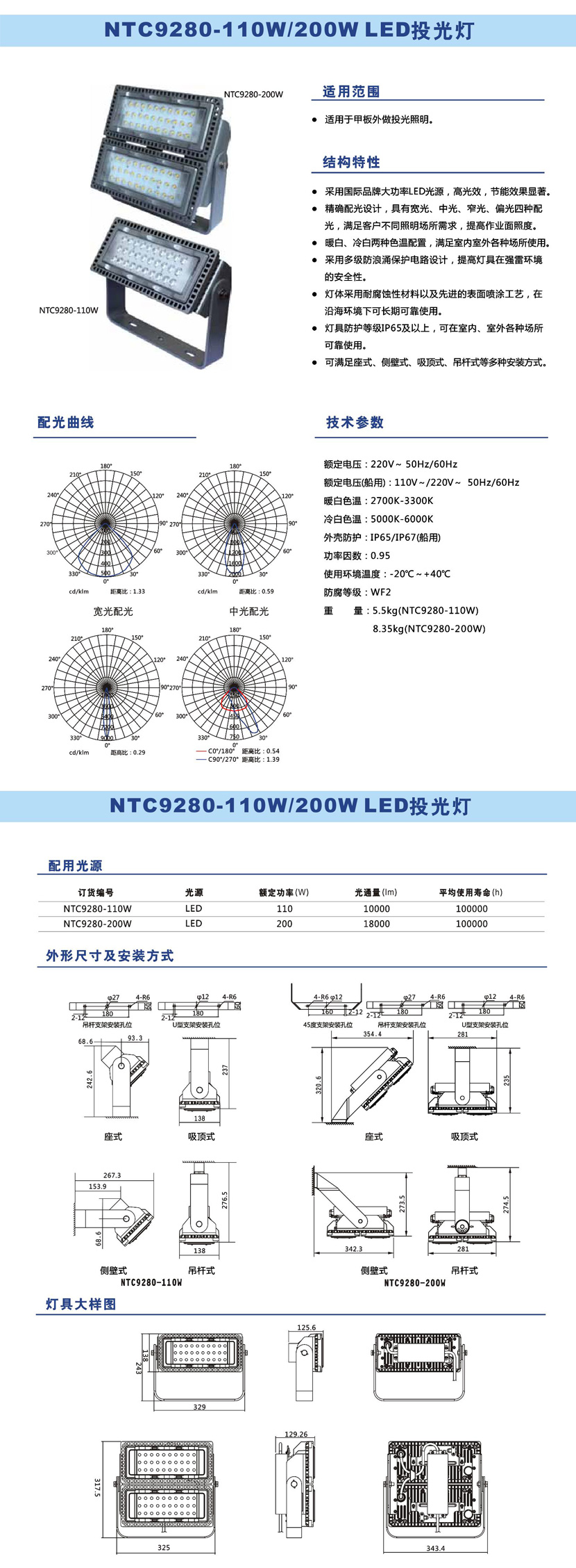 色溫: 2700~3300k(暖白);5000~6000k(冷白) 光通量: 10000lm
